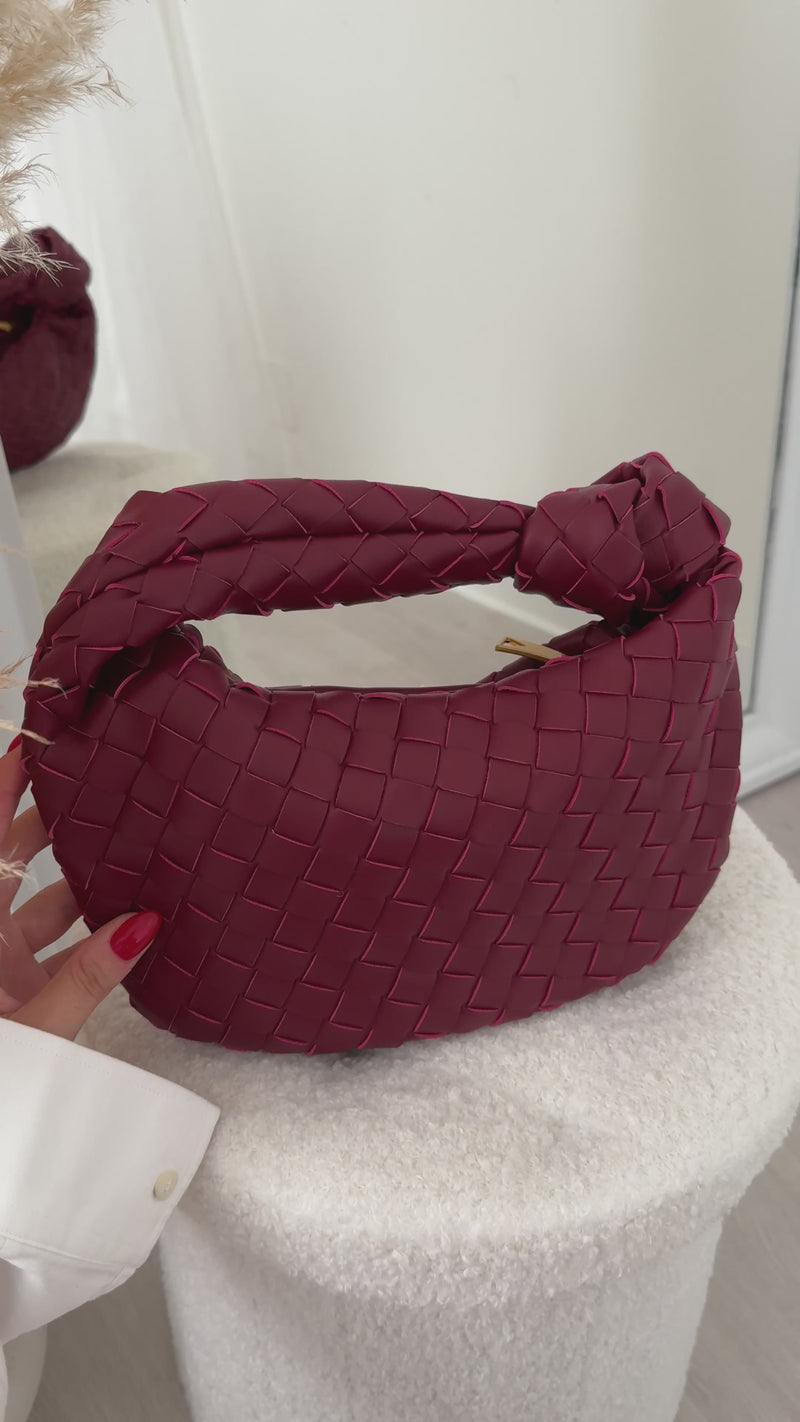 Borsa intreccio in simil pelle con chiusura zip e tasca interna.