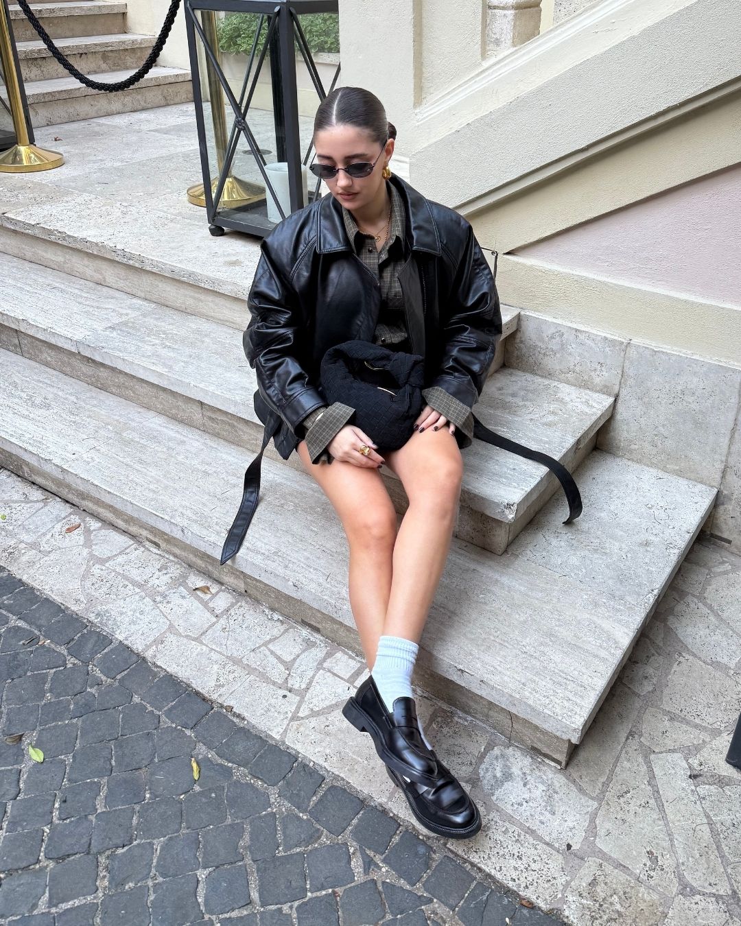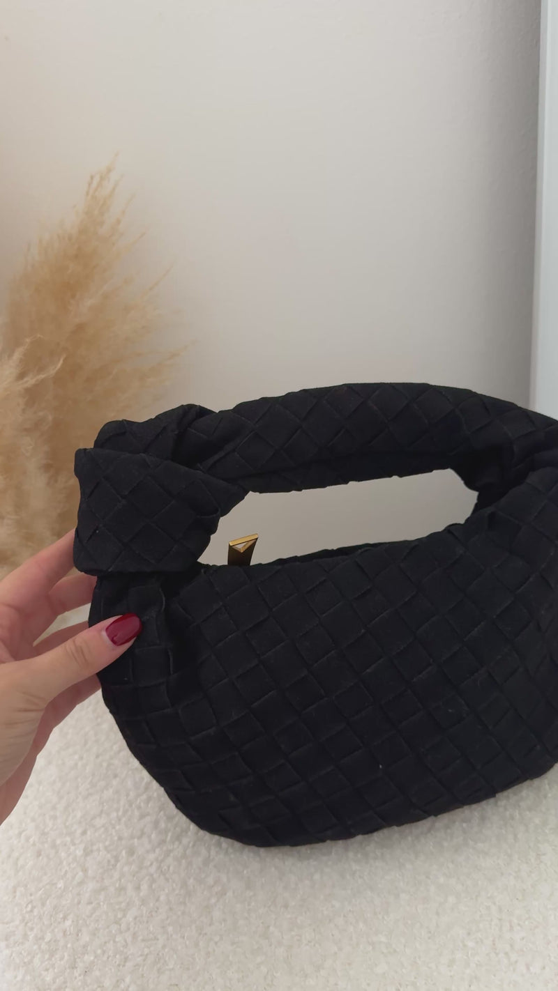 Borsa intreccio in suede con tasca interna con chiusura con zip.