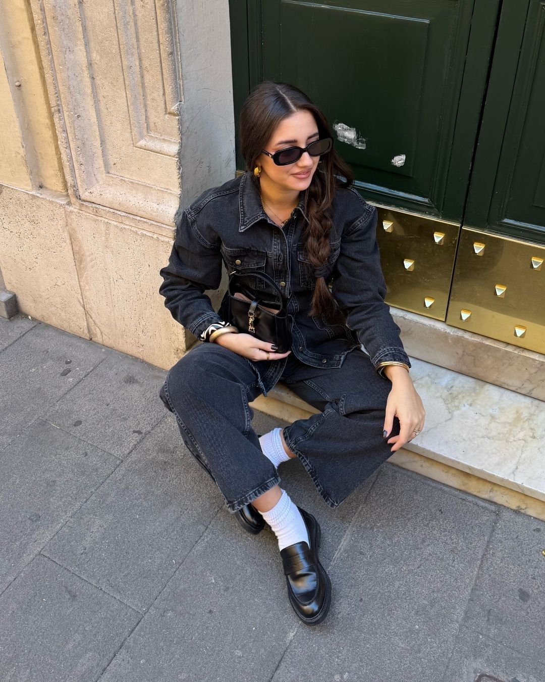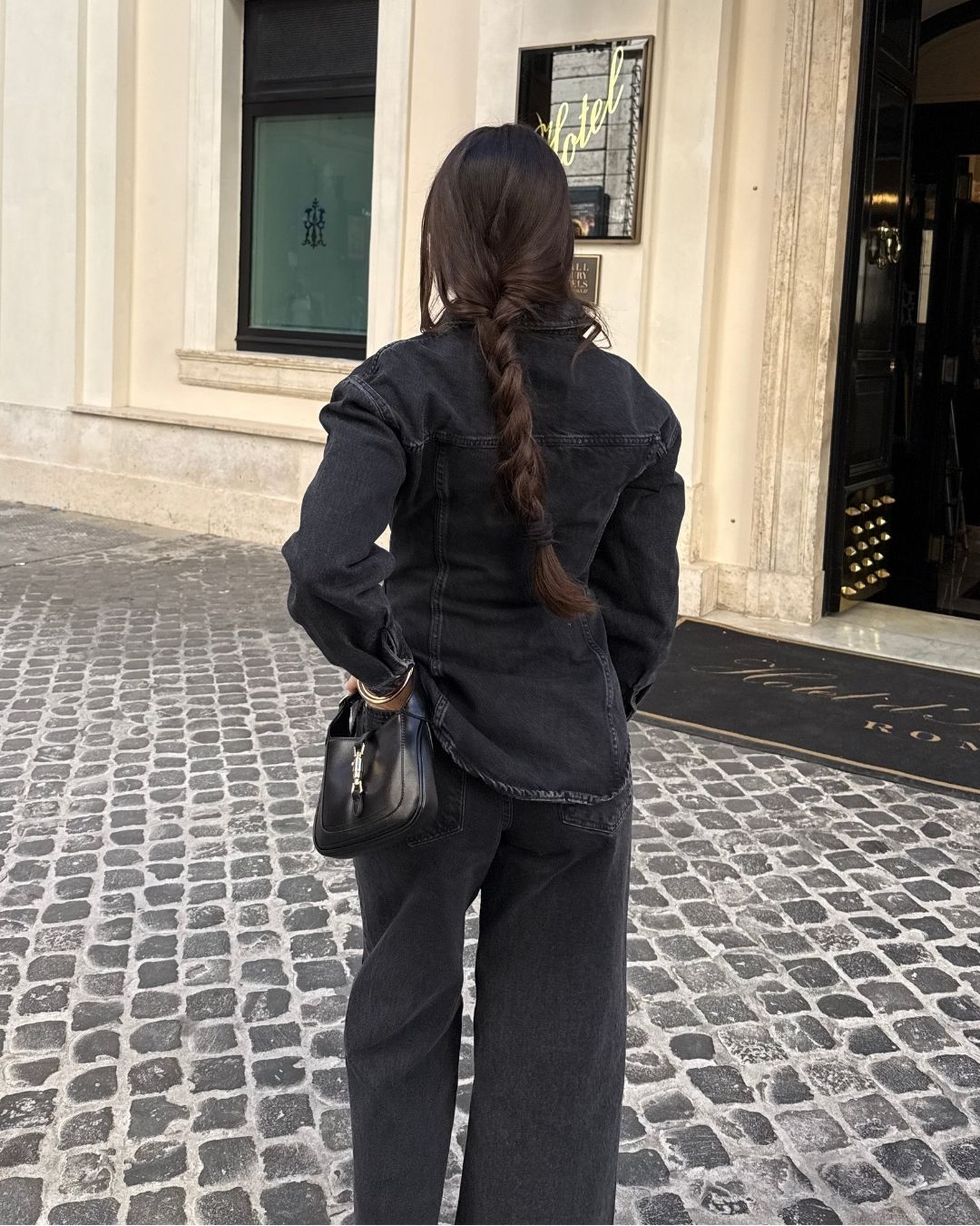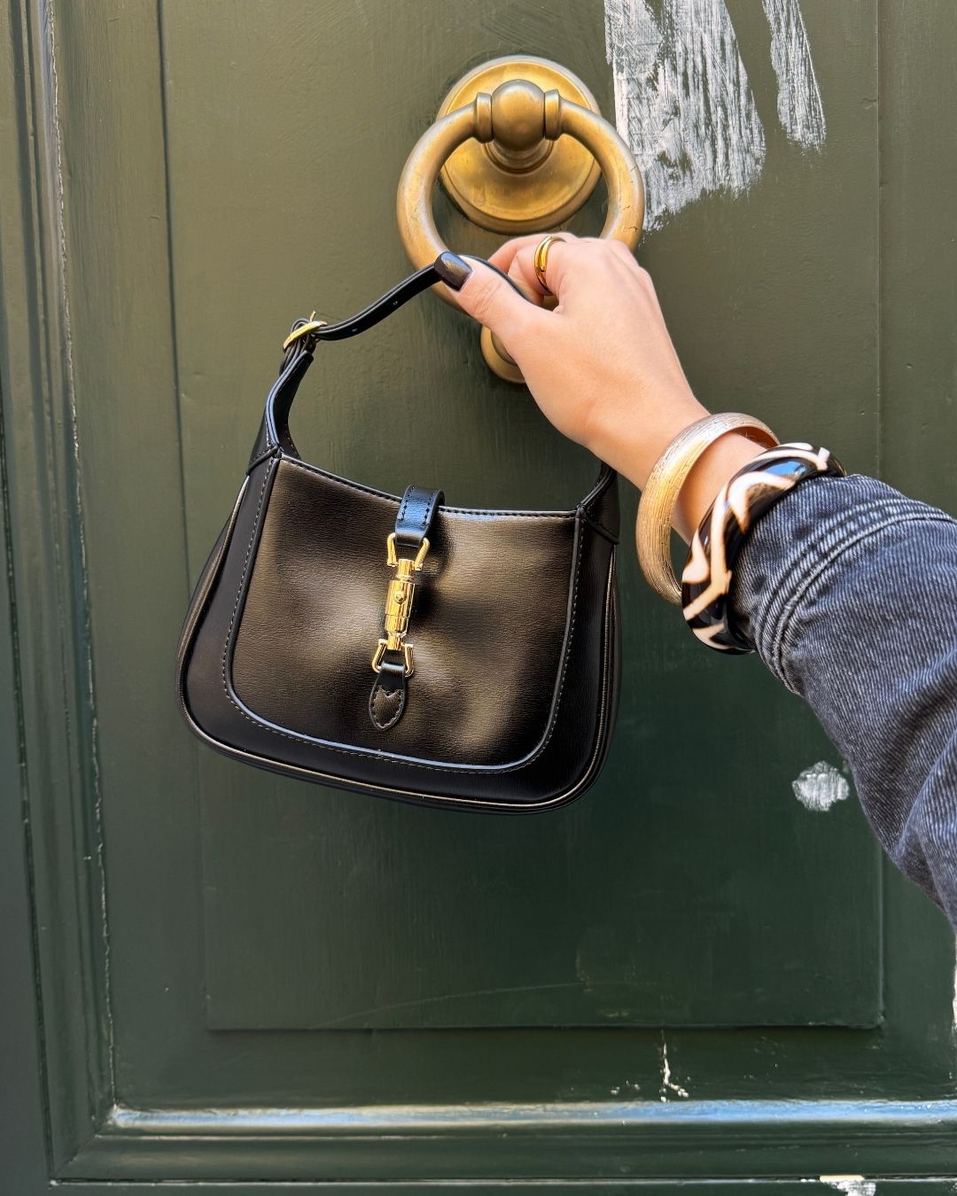 Bag in vera pelle con hardware dorato.