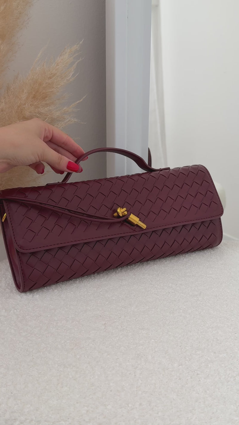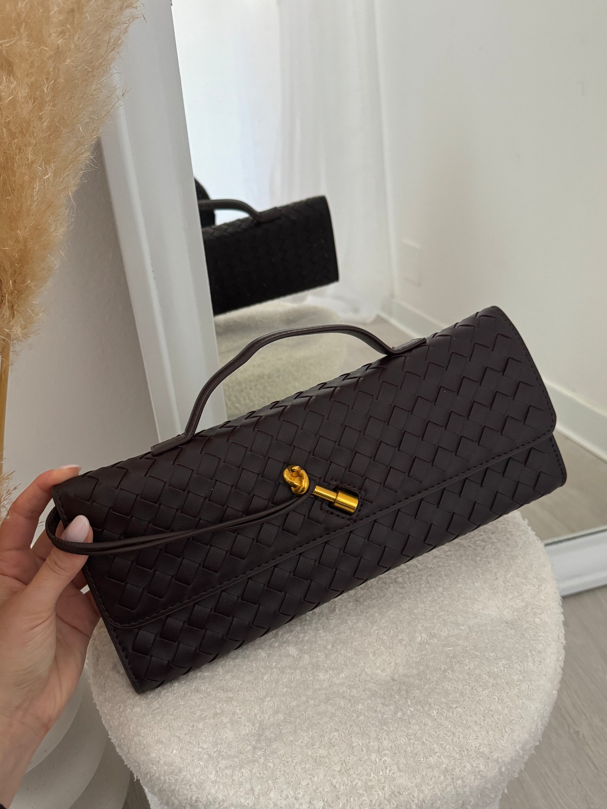 Bag intrecciata rettangolare con tasca interna con zip. Si può portare sia a mano che a spalla perchè è dotata di tracolla.